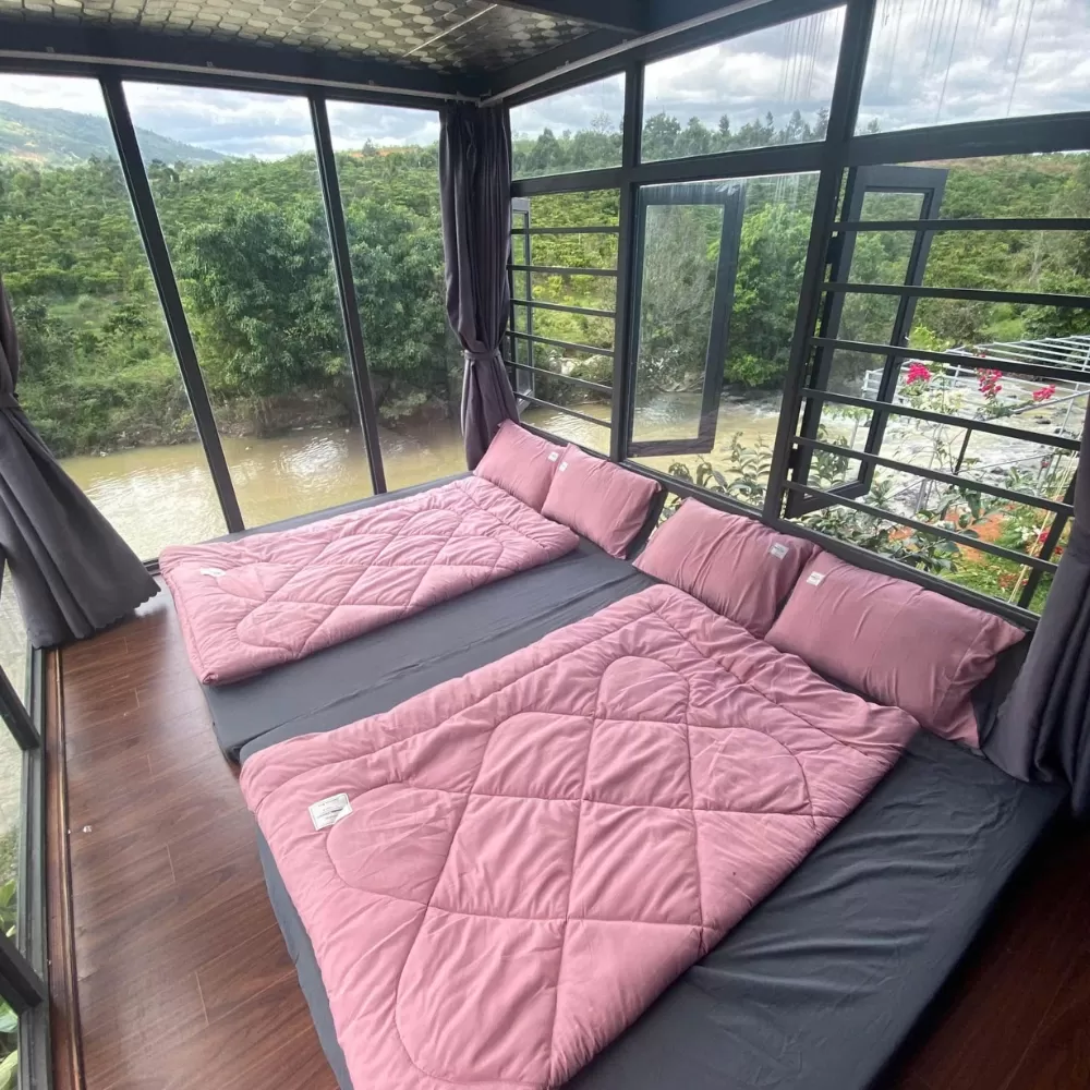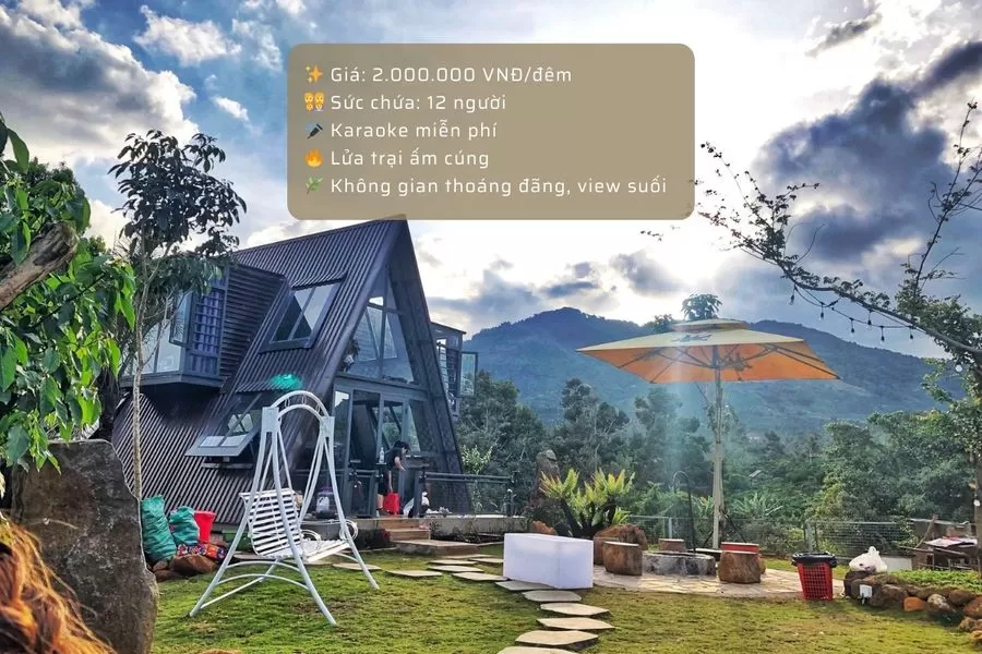 Nhà Kính Homestay mang đến không gian nghỉ dưỡng lý tưởng với thiết kế hiện đại, thoáng đãng và gần gũi thiên nhiên. Với giá 2 triệu đồng mỗi đêm, căn nhà có sức chứa lên đến 12 người, phù hợp cho các nhóm bạn bè hoặc gia đình muốn tận hưởng kỳ nghỉ thoải mái. Đặc biệt, homestay cung cấp dịch vụ karaoke miễn phí, giúp bạn có những phút giây thư giãn trọn vẹn. Khu vực lửa trại ấm cúng cùng không gian xanh mát bên suối tạo nên trải nghiệm đáng nhớ. Liên hệ ngay để đặt chỗ và tận hưởng kỳ nghỉ tuyệt vời tại Bảo Lộc.
